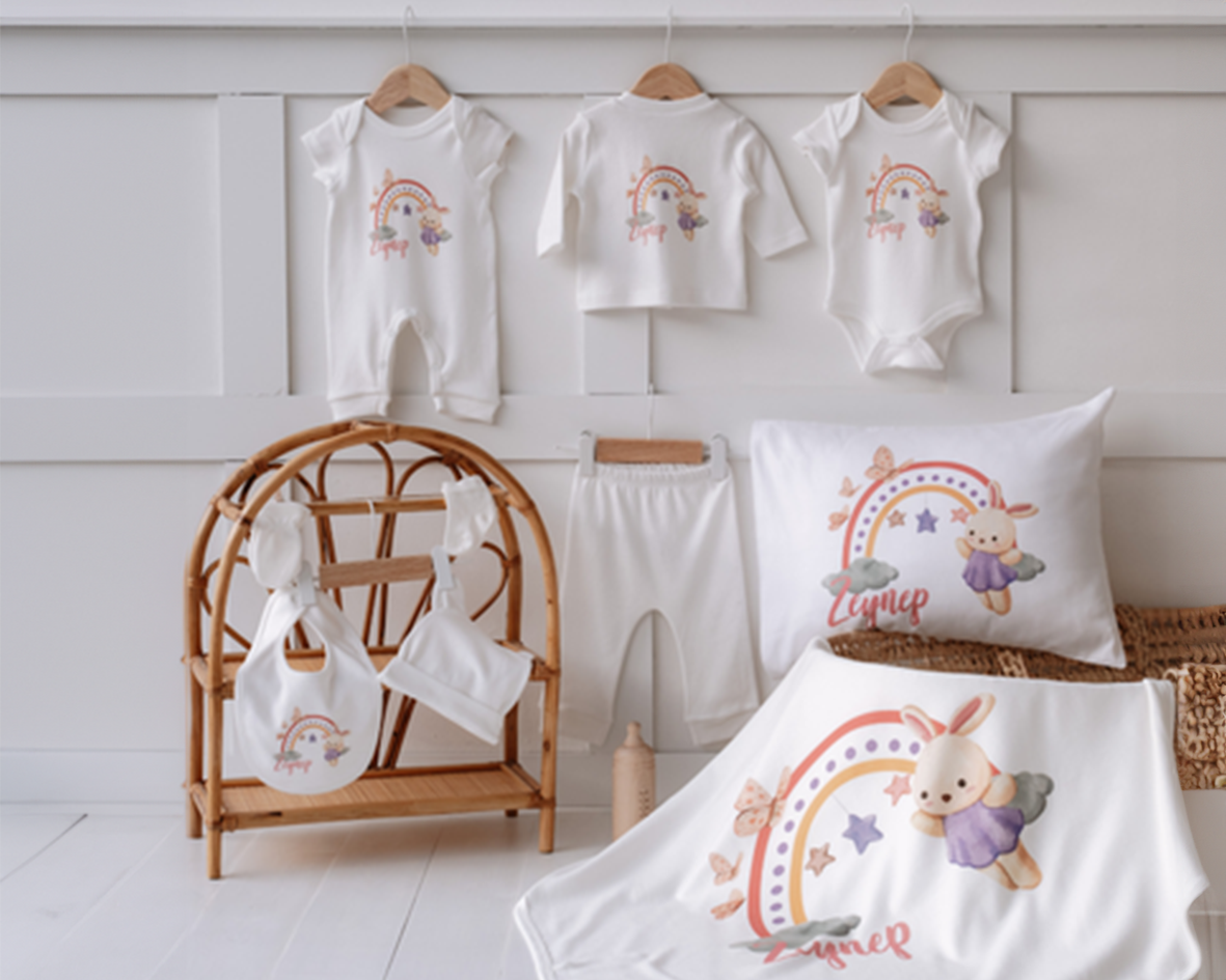 %100 Organik Pamuk 3lü Baskılı Kısa Kollu Bebek Body